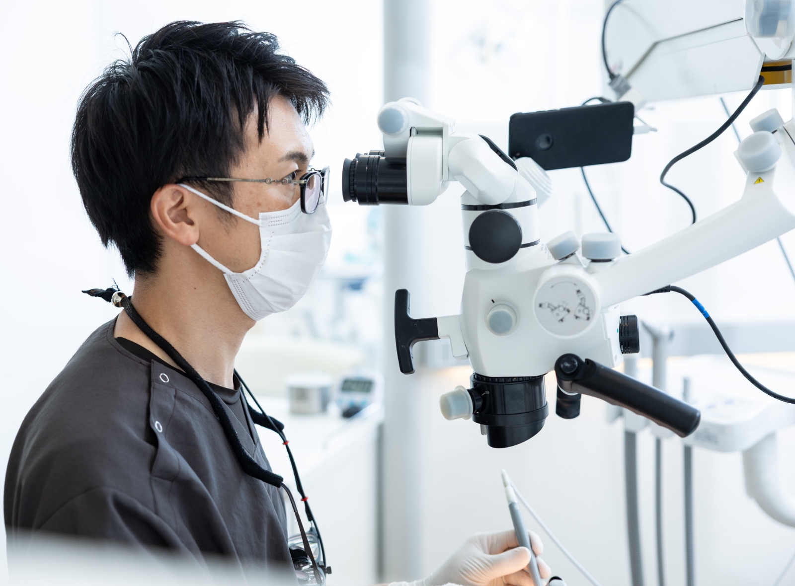 当院では、虫歯治療にマイクロスコープを活用し、精密で質の高い治療を行っています。マイクロスコープを使用することで、肉眼では見えない細部まで確認しながら治療を進めるため、健康な歯を極力削らず、必要な部分だけを的確に処置することが可能です。他院では見落とされがちな初期の虫歯にも対応し、再治療を必要としない治療をご提供します。
